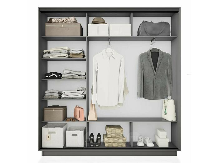 Шкаф Экспресс 2 3-х дверный Трио ЛДСП Зеркало ЛДСП (Чёрный профиль) Серый Диамант 2400x2400x450