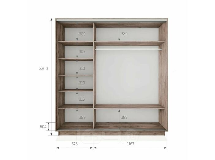 Шкаф-купе 1800x600x2200 Экспресс 2 Дуб Крафт табачный зеркало, ЛДСП