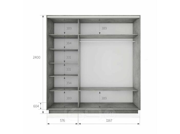 Шкаф Экспресс 2 3-х дверный Трио Зеркало (Чёрный профиль) Бетон 1800x2400x600