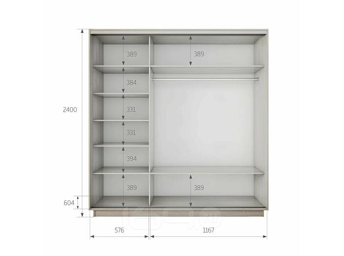 Шкаф-купе 1800x600x2400 Экспресс 2 Ясень Анкор светлый зеркало, ЛДСП