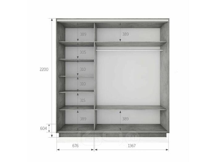 Шкаф-купе 2100x600x2200 Экспресс 2 Бетон зеркало, ЛДСП