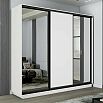 Шкаф Экспресс 2 3-х дверный Трио Зеркало ЛДСП Зеркало (Чёрный профиль) Белый снег 1800x2200x600
