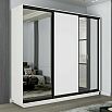 Шкаф Экспресс 2 3-х дверный Трио Зеркало ЛДСП Зеркало (Чёрный профиль) Белый снег 1800x2400x600