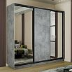 Шкаф Экспресс 2 3-х дверный Трио Зеркало ЛДСП Зеркало (Чёрный профиль) Бетон 1800x2400x600