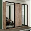 Шкаф Экспресс 2 3-х дверный Трио Зеркало ЛДСП Зеркало (Чёрный профиль) Дуб Крафт Табачный 2100x2200x450
