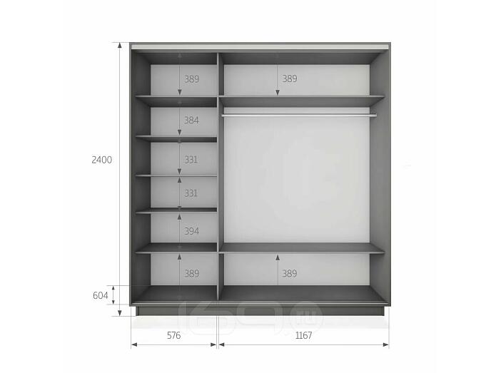 Шкаф-купе 1800x600x2400 Экспресс 2 Серый Диамант зеркало, ЛДСП