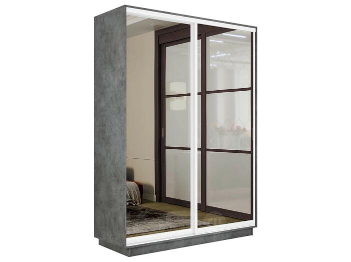 Шкаф Экспресс 2 Широкий 2-х дверный Дуо Зеркало (Белый профиль) Бетон 1800*2400*600