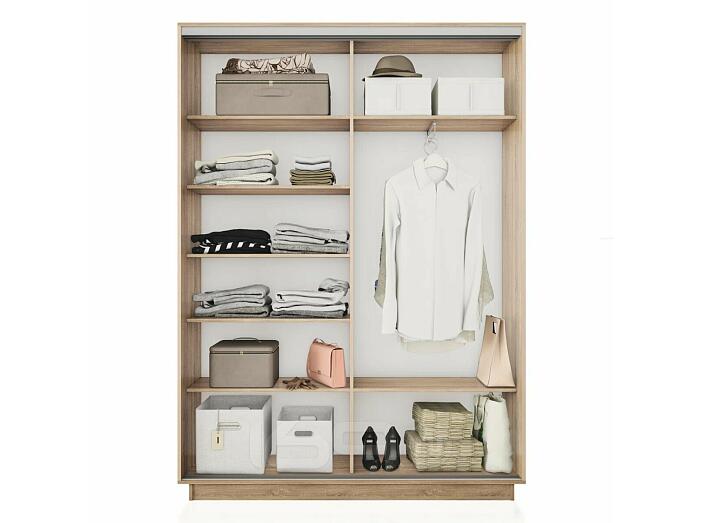 Шкаф Экспресс 2 Широкий 2-х дверный Дуо Зеркало ЛДСП (Серебряный профиль) Дуб сонома 1800*2200*450