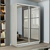 Шкаф Экспресс 2 Широкий 2-х дверный Дуо Зеркало (Серебряный профиль) Ясень Анкор светлый 1800*2400*600