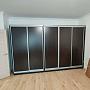 Раздвижные двери – двери с системой открывания купе. Она состоит из дверных полотен, направляющих, роликовых механизмов и ограничителей. Открывание и закрытие дверей происходит путем перемещения полотен по нижней и верхней направляющей, при этом одно из полотен заезжает за другое.