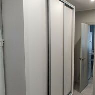 Раздвижные двери – двери с системой открывания купе. Она состоит из дверных полотен, направляющих, роликовых механизмов и ограничителей. Открывание и закрытие дверей происходит путем перемещения полотен по нижней и верхней направляющей, при этом одно из полотен заезжает за другое.