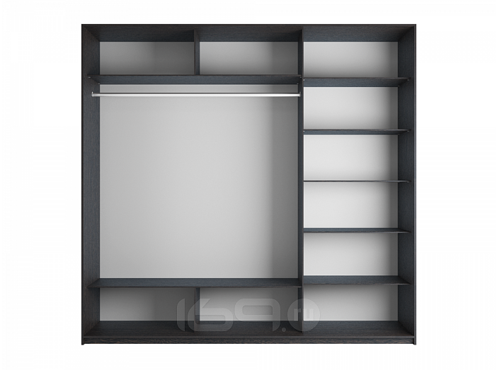 - Во внутренней компоновке отделение с полками находится только справа, а дополнить её можно встраиваемым модулем с двумя выдвижными ящиками (опция).
