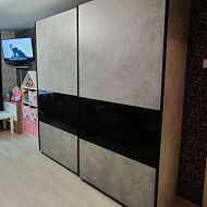 Шкаф-купе Прайм Премиум 2-х дверный (фасад дсп/стекло белое) Чёрный профиль Бетон
