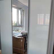 Раздвижные двери – двери с системой открывания купе. Она состоит из дверных полотен, направляющих, роликовых механизмов и ограничителей. Открывание и закрытие дверей происходит путем перемещения полотен по нижней и верхней направляющей, при этом одно из полотен заезжает за другое.
