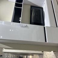 Лаконичные белые глянцевые фасады создают ощущение чистоты и свежести, лёгкости, свободного пространства.