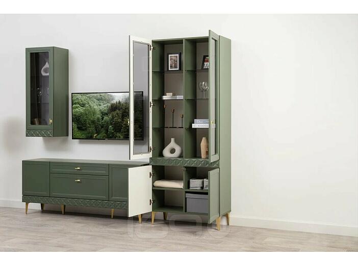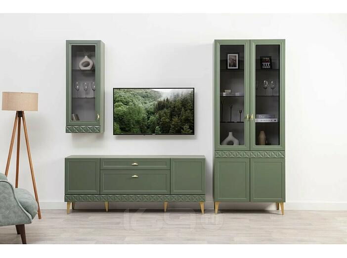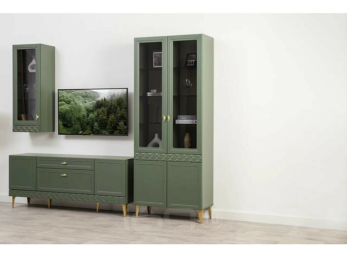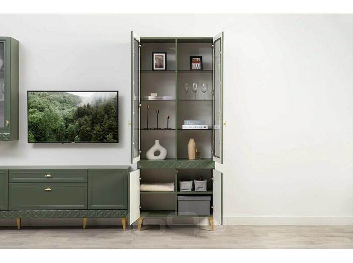 Марион Шкаф-витрина 16.397.02 Дымчатый Зеленый K521, Олива шагрень AG 1050 ПВХ